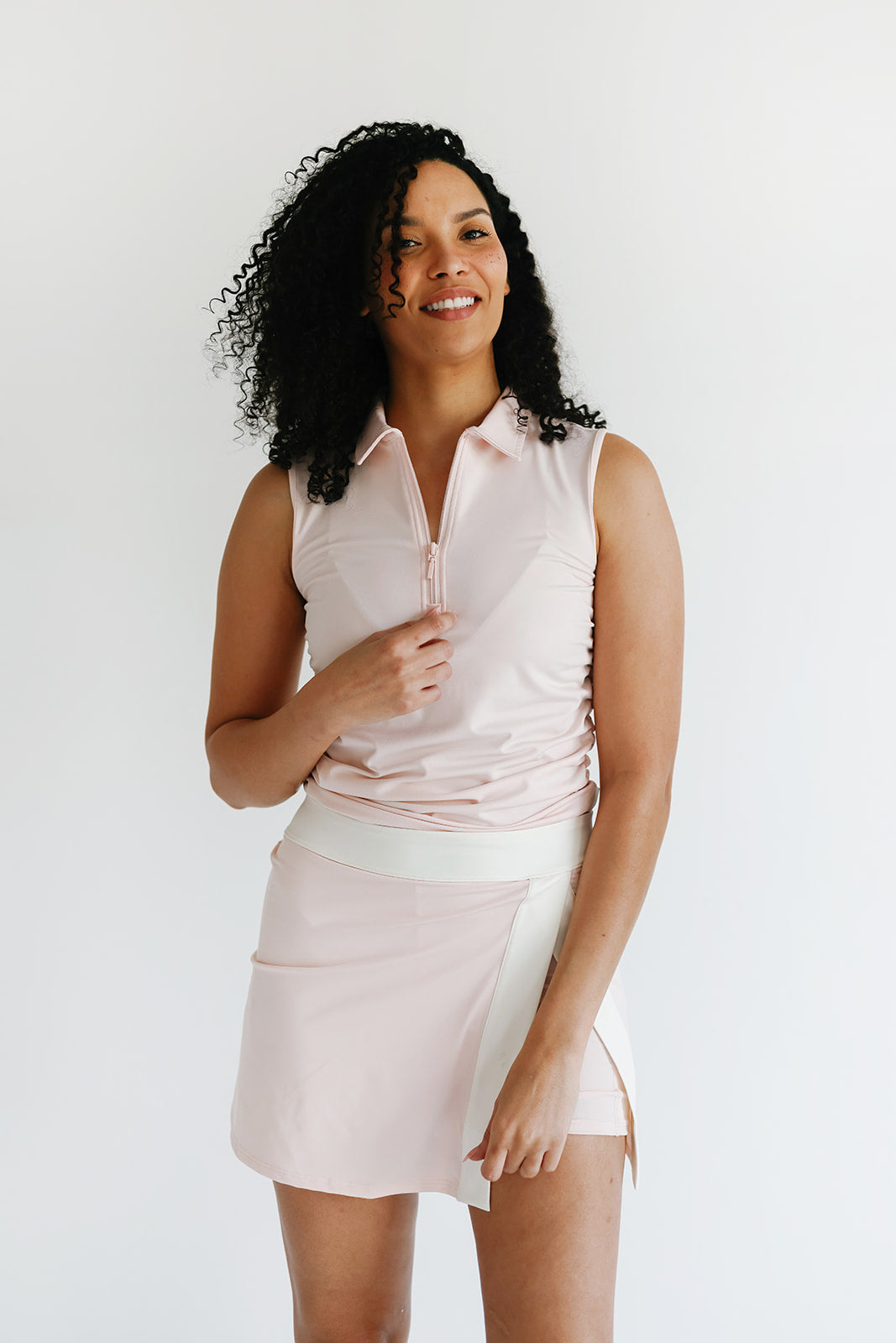 Where classic meets cool—the featuring a sleek quarter zip, flattering ruching, and a crisp collar for that polished-on-the-go vibe. Same soft, sweat-wicking fabric you love, made to keep up from the first tee to post-round hangs.